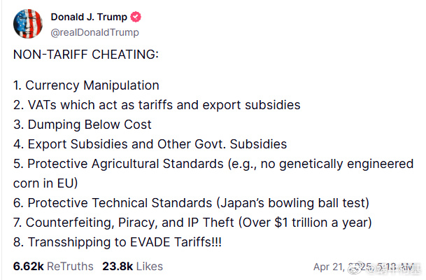 特朗普列舉了全球各地政府對美國的非關税性欺詐,包括