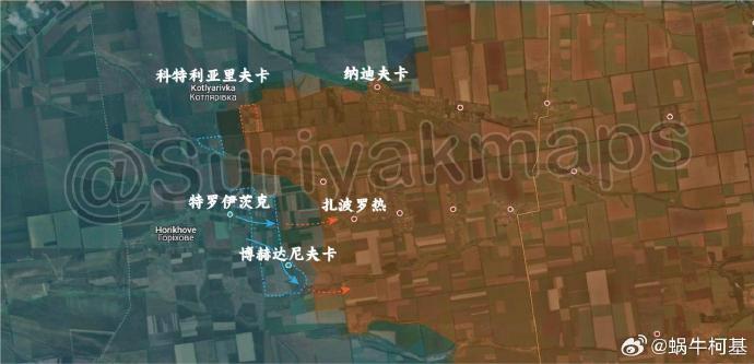3、奧切列季涅:俄軍完全控制了蘇卡巴爾卡並佔領了列奧尼迪夫卡西南的一系列陣地。