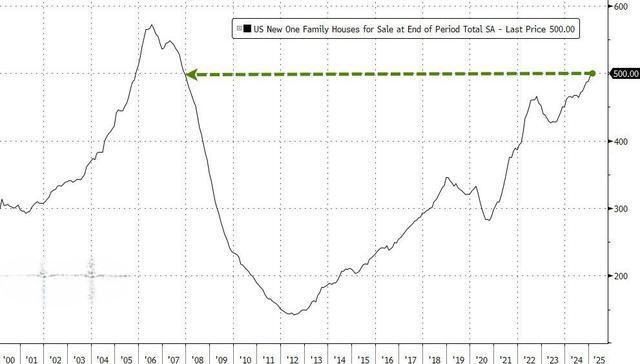 值得注意的是,美國房價在疫情期間上漲超過40%,疊加2022年抵押貸款利率從3%飆升至6%左右,嚴重削弱了住房可負擔性。目前30年期固定抵押貸款利率仍徘徊在7%左右的高位,美國新房庫存已達到2007年以來的最高水平。
