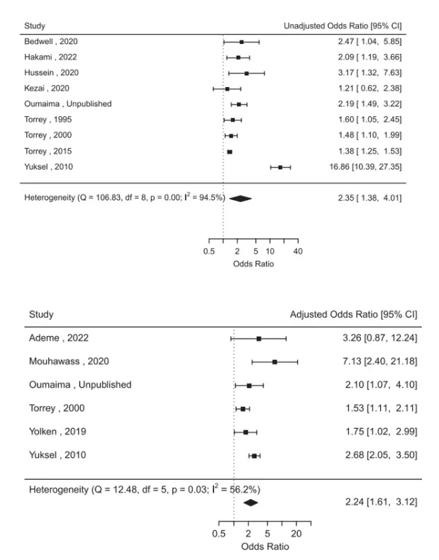 3 在控制偏倚後,精神分裂症患者較高的弓形蟲感染率仍具有統計學意義。