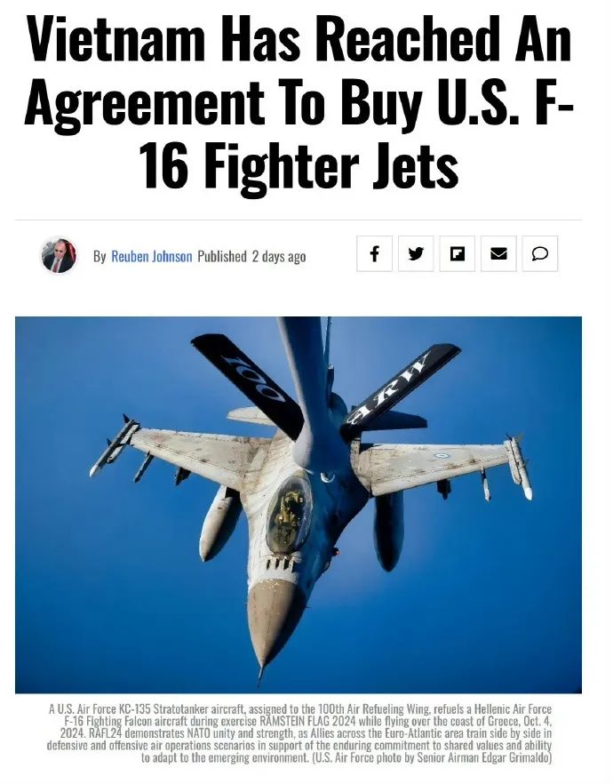 毫無疑問,由1945網站爆出來的這個消息,堪稱爆炸性新聞。雖然越南早在懂王的第一個任期就炒作要購買F-16戰鬥機,甚至到拜登時期也在説,最後都不了了之。但是真正傳的有鼻子有眼,説的看起來已經到了交易的最後階段,這還是第一次。