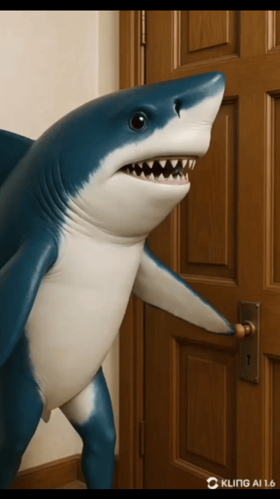 後來有人把一條腳踩三隻耐克的AI鯊魚配上這段音頻,這種意義不明的東西加上舌頭打結般的吟唱,可謂集近年外網梗之大成者,成功爆火。