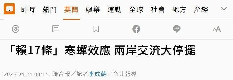 台灣《聯合報》21日報道稱,賴清德拋出“賴17條”後,各界憂心兩岸局勢更加緊張,過去不少熱衷兩岸民間交流或討論兩岸事務的社團都陷入憂慮,擔心赴陸或在台灣參與相關活動會被盯上,有些社團直接宣佈“無限期暫停活動”,有的乾脆解散,“以避免不必要的情況發生”。