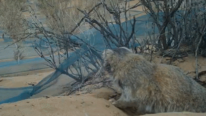 諷刺的是,這片棲息地在較大程度上是由人類治沙種梭梭而形成的(雖然此前也是以本土沙生植物為羣落),大量梭梭養育了滿地的沙鼠,進而又為專吃沙鼠的荒漠兔猻提供了棲身之所。而狗的到來似乎又在將這個新的兔猻避難所摧毀。