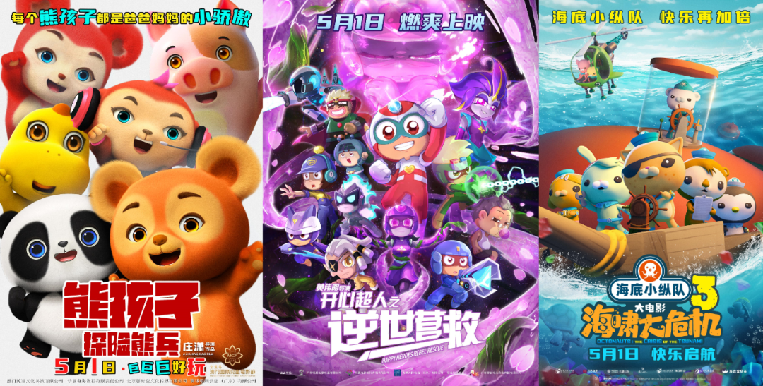 在五一檔期間,還將有三部動畫影片與觀眾見面,但從三部動畫新片的定位中或可窺見行業焦慮:《熊孩子·探險熊兵》靠“熊出沒”山寨標題吸引誤點購票;《開心超人之逆世營救》沿用十年前的Flash畫風;《海底小縱隊》仍是“科普+冒險”安全牌。