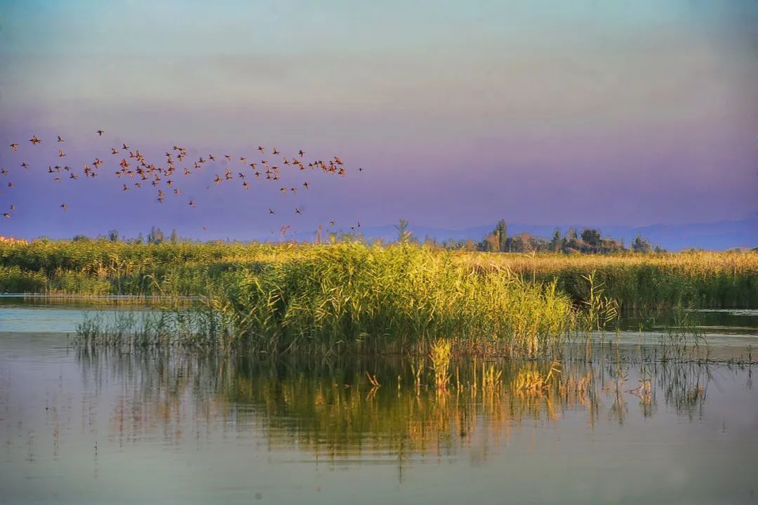 在新疆瑪納斯這片被天山雪水滋養的土地上,藏着一處鮮為人知的生態天堂。當晨光初現時,瑪納斯國家濕地公園的湖面泛起細碎的金色漣漪,成羣的蓑羽鶴掠過蘆葦蕩,翅膀扇動的聲響驚醒了沉睡的沼澤。