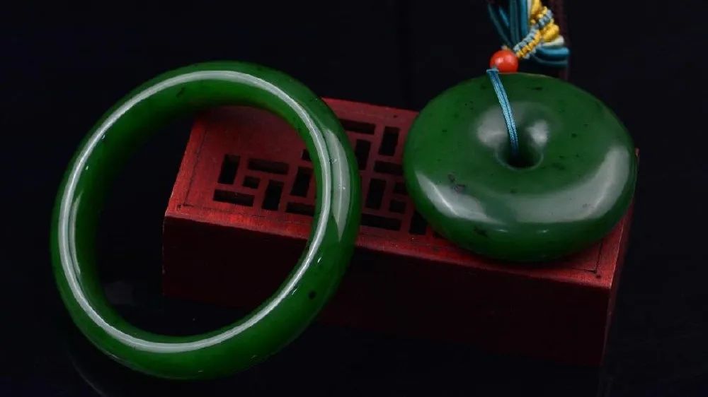 瑪納斯碧玉與和田玉同屬“碧玉類”,但瑪納斯碧玉以菠菜綠為主色調,常伴有點狀、條狀白斑或墨點。