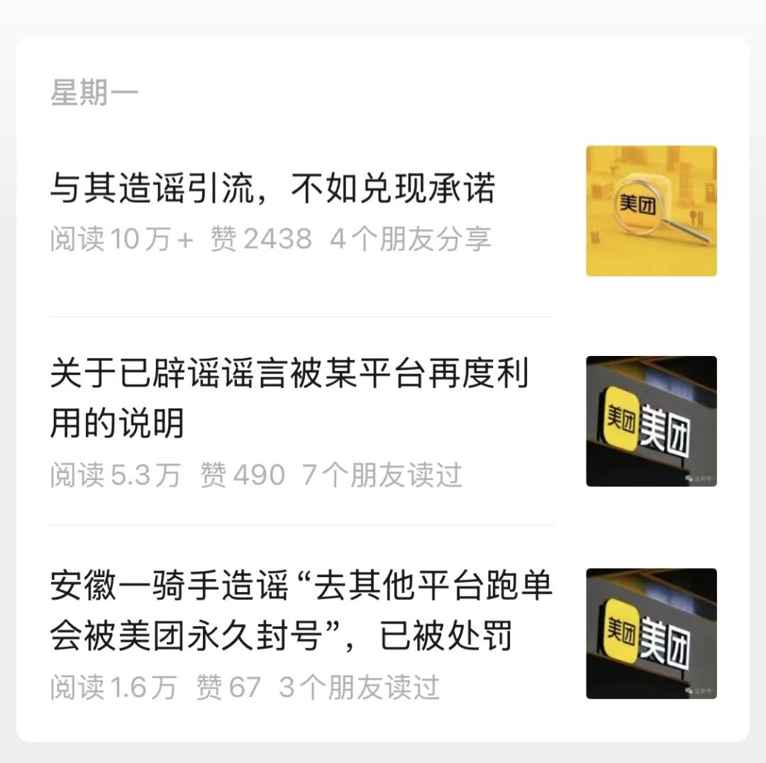 儘管京東並沒有指名具體是哪家平台強迫“二選一”,但是這波把騎手收入捆綁譴責的控訴,顯然讓友商坐不住了,在這封公開信發出當天,美團用一則三連推送闢謠,算是正式接下了京東外賣的隔空引戰。