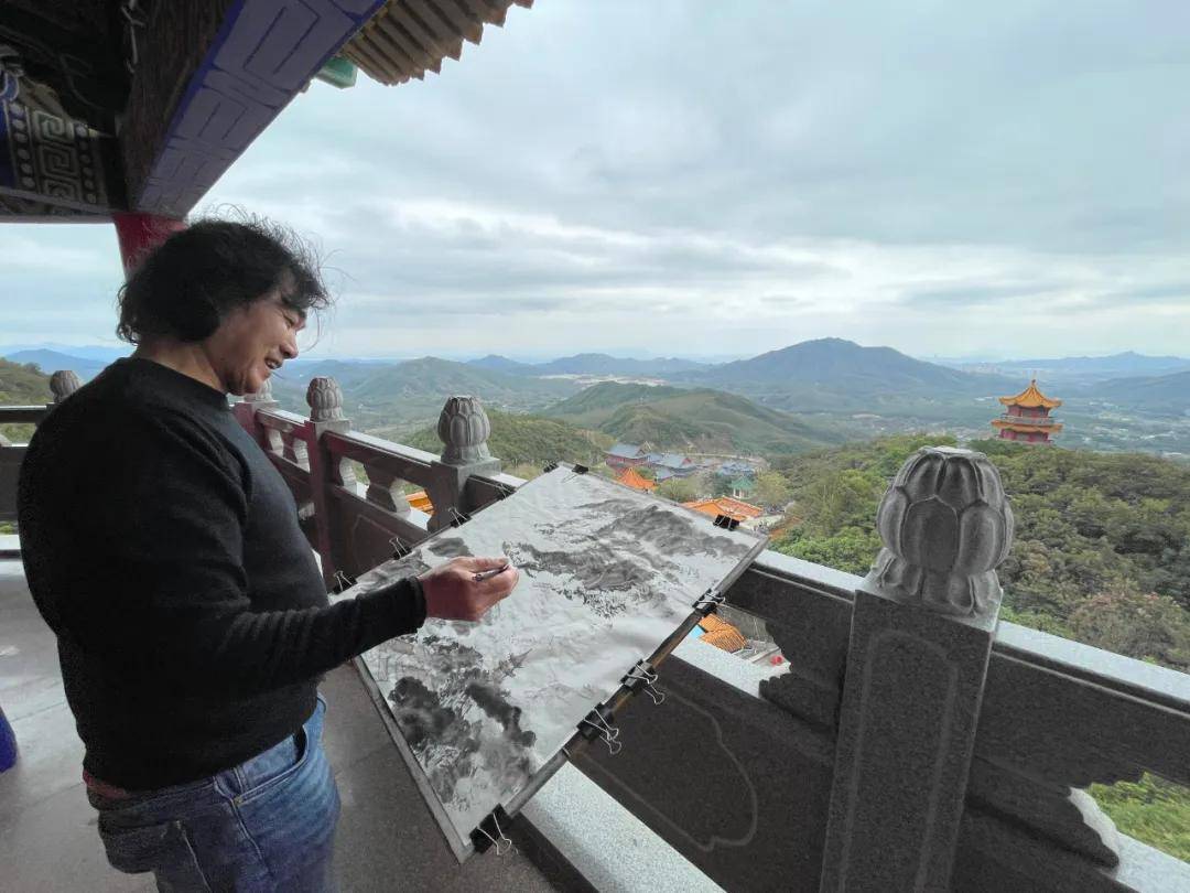 這份理念的成熟,亦體現在其藝術成就中:2019年他獲賈平凹文學藝術館藝術邀請季提名藝術家,隨後在嶺南美術出版社出版了《水墨大境·周波山水畫集》,這本畫集更系統展現了他“大景大觀”的創作脈絡。而此次寫生汕尾蓮花山,亦是他又一次將理念付諸實踐的典型案例。