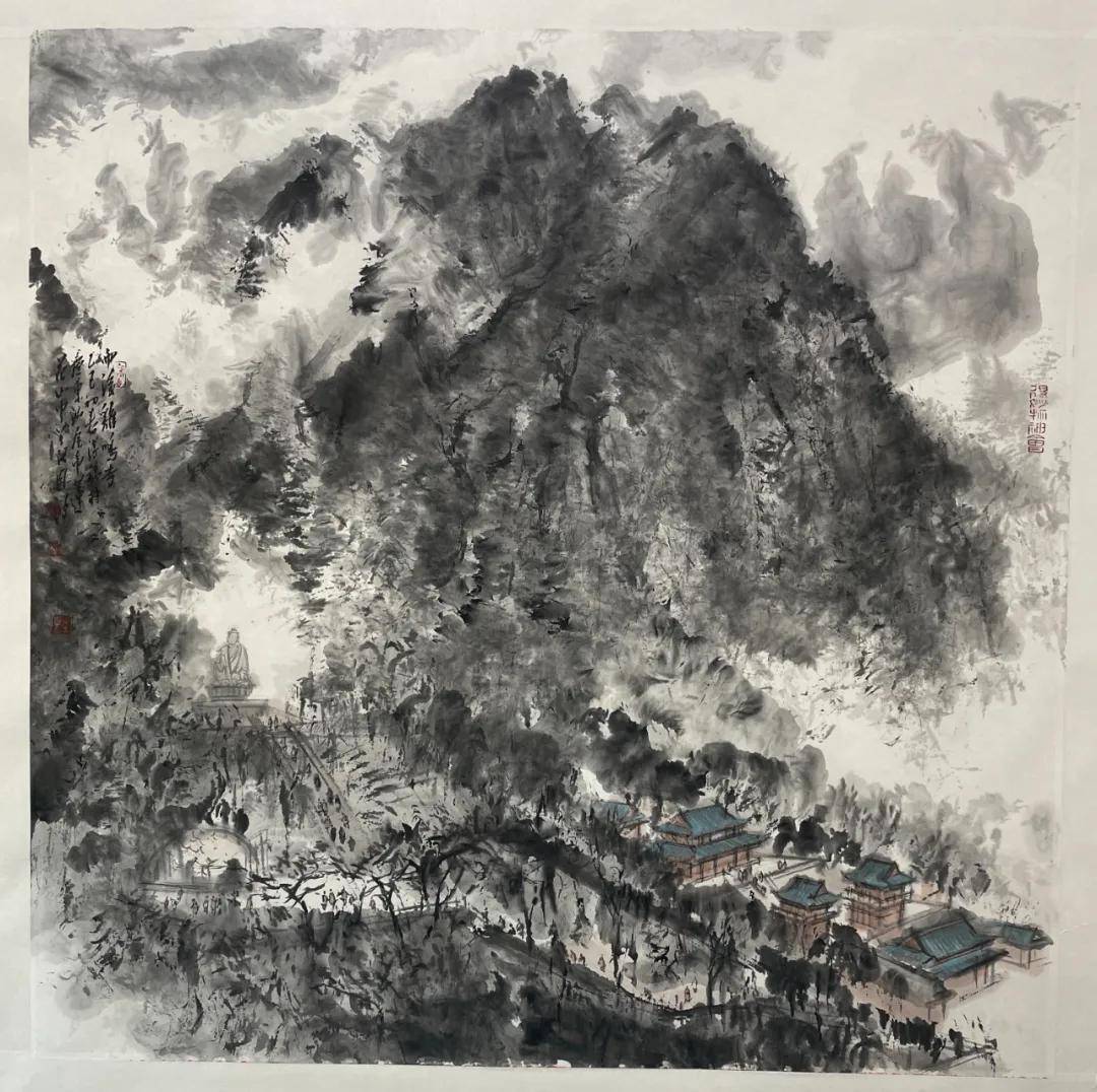周波《煙嵐度梵音》 68cmx68cm 中國畫 2025