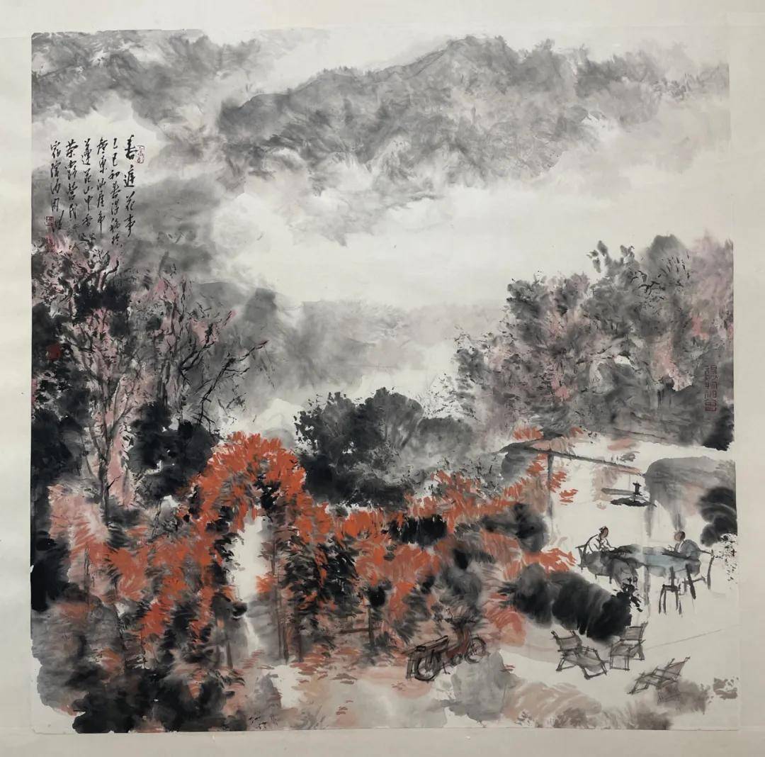 周波《雲山桃花季》 68cmx68cm 中國畫 2025