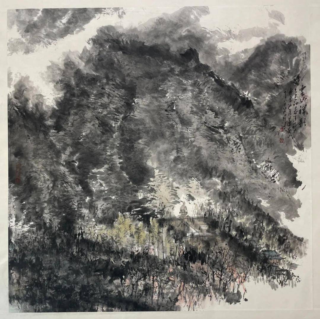 周波《雲山藏古寺》 68cmx68cm 中國畫 2025