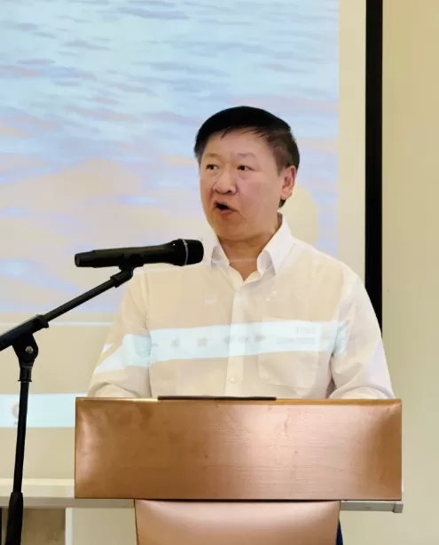 圖為陽江市新階聯會李華國會長作陽江產業報告。王強 攝