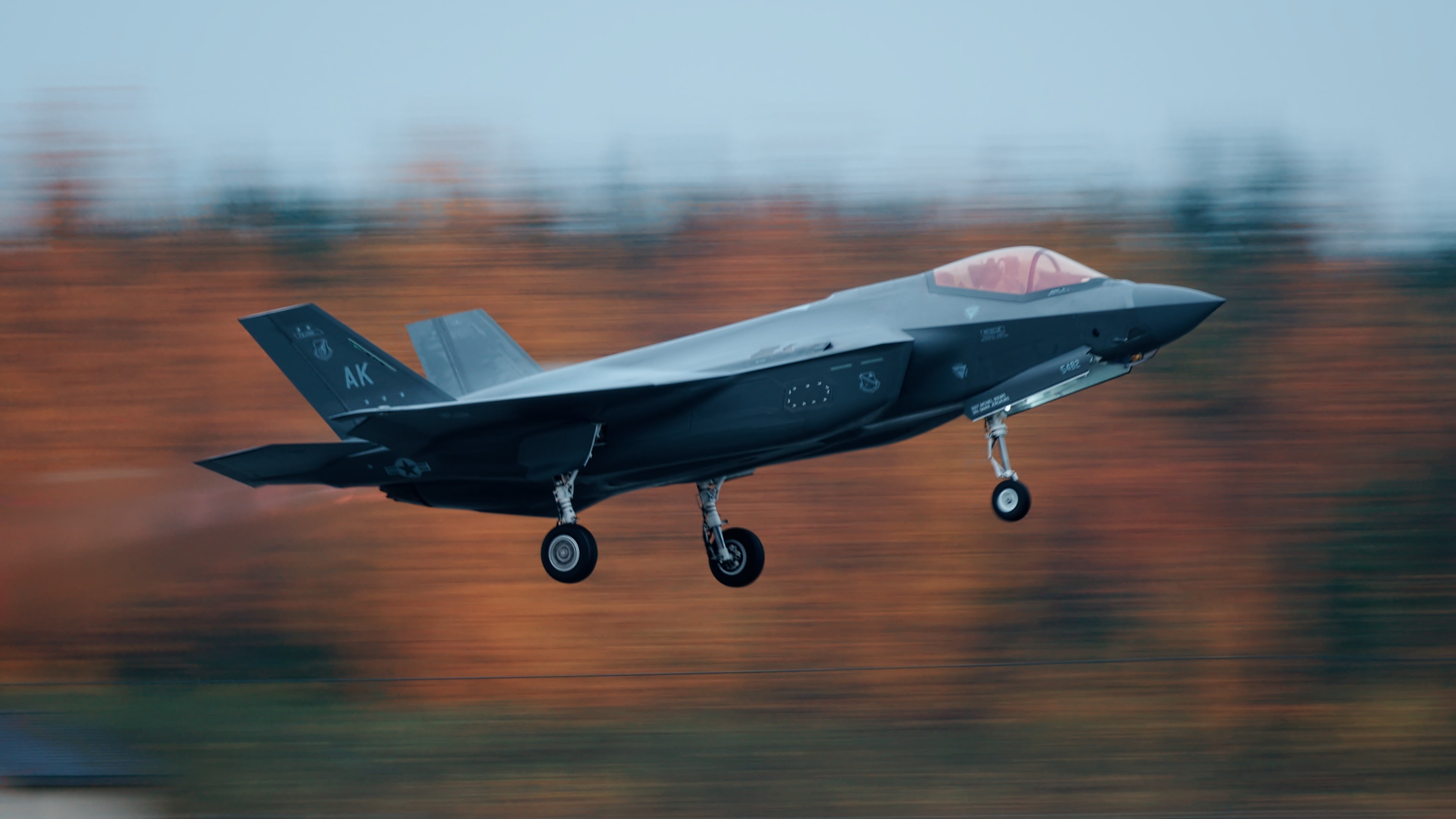 2024年9月19日,阿拉斯加州埃爾門多夫-理查德森聯合基地,隸屬於第354戰鬥機聯隊的一架F-35“閃電III”起飛,參加該聯隊的多機演練。(美國空軍資深軍士肖恩·蘭姆拍攝)
