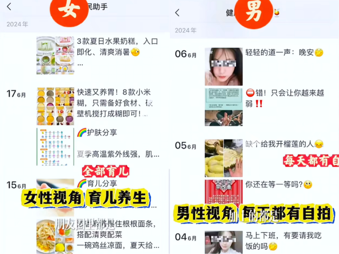 你看到的是女性互幫互助,男性看到的可能是擦邊照片。
