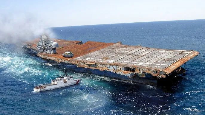 首先,航母這種巨型軍艦非常抗打。在1946年“十字路口行動”中,美國獨立號航母在距離爆心僅510米的距離,抗住了一枚2.3萬噸當量的核彈爆炸,之後又抗住了第二枚水下爆炸的核彈,始終沒有沉沒。