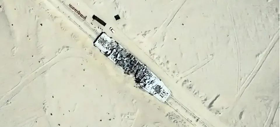 ▲為了測試打擊海上大型移動目標,中國在西北某地搭建了會移動的航母靶標,之後微信發現這艘航母靶標已經被摧毀