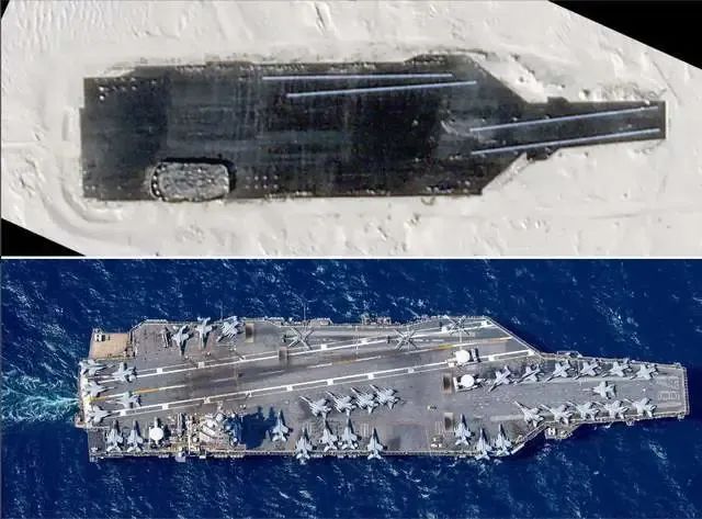 ▲中國西北某地還有一座輪廓與美國福特號航母完全一樣的靶標,用來模擬毀傷效果。