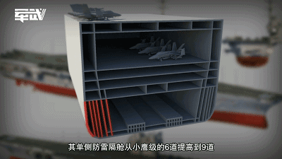為了防禦水下的魚雷攻擊,尼米茲級設計時的防雷指標就達到了驚人的1000公斤,其單側防雷隔艙從小鷹級的6道提高到9道,目前各國普遍裝備的533mm重型魚雷裝藥量通常在500公斤左右,面對尼米茲級1000公斤的防護水平基本是隔靴搔癢。
