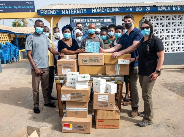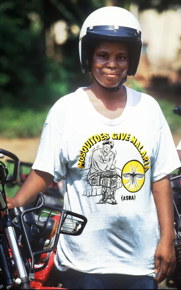 加納的醫療衞生工作者身穿印有瘧疾宣傳知識的T恤