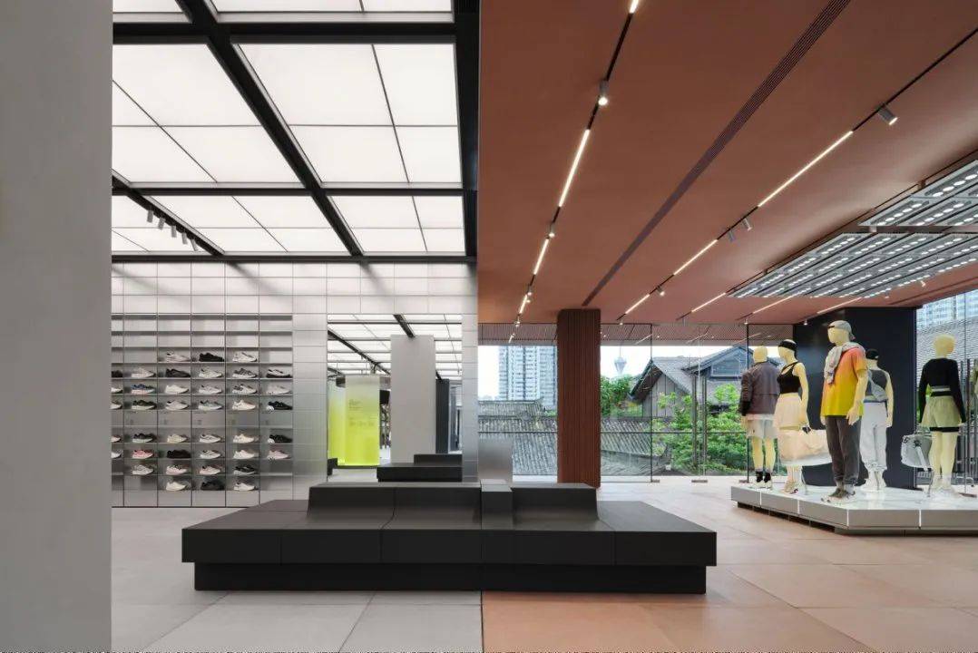 以此次在成都開出的中國旗艦店為例。500平方米的超大空間,設計靈感來源於成都“衝突與融合”並存的城市氣質,將科技創新與在地文化巧妙融入建築語言中。門店設計以“竹”元素為核心靈感,天窗將自然光線引入空間,與自然緊密相連。