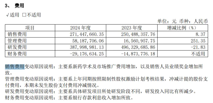 據澤璟製藥年報披露,2024年銷售費用高達2.71億元,較2023年的2.5億元增加了8.37%。
