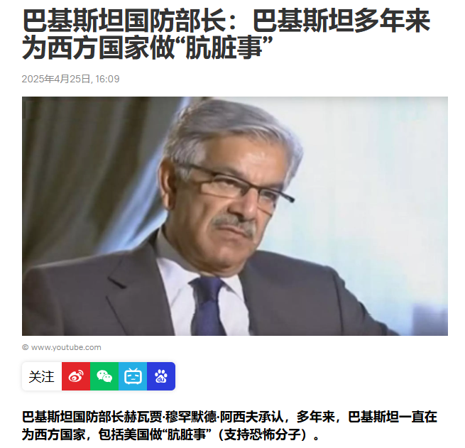而巴基斯坦最近也和美國扯上了關係,巴基斯坦國防部長阿西夫在與路透社記者的採訪中公開承認了“巴基斯坦過去30多年一直為西方國家,特別是美國,進行了許多骯髒工作,其中包括‘支持美國需要的分子’”。巴基斯坦國防部長提到了其參與了針對蘇聯的戰爭和9·11襲擊後的反恐戰爭。棉花絮認為巴基斯坦國防部長肯定指的是其根據美國中情局的授意參與了支持拉登等反蘇聯武裝的工作,而後在配合美國針對拉登的大規模進攻和襲擊中也付出了巨大的人員和經濟代價。即使在現在的仍有爆料稱巴基斯坦仍在為西方大量生產烏克蘭急需的炮彈。