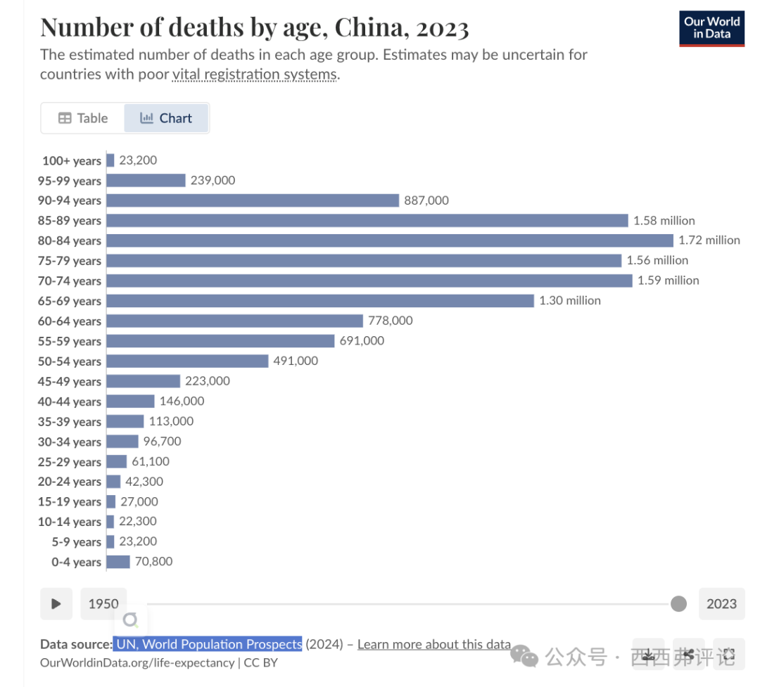 聯合國的數字和中國公佈的數據有少許差別,比如2023年人均預期壽命,聯合國的數字是78.0歲,中國公佈的是78.6歲。但這個差別不大,也無所謂了。