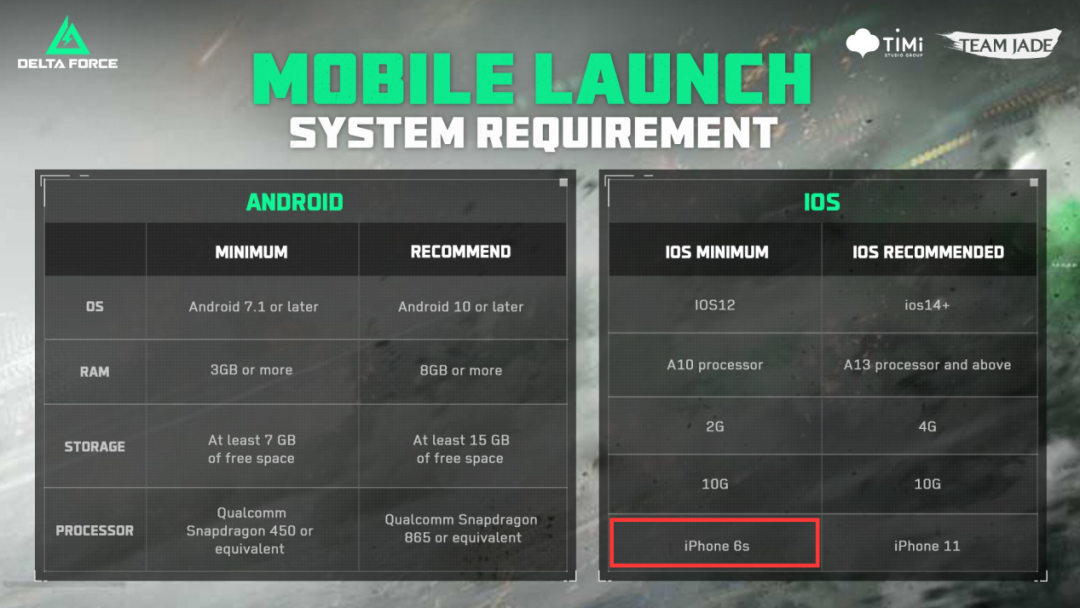 哪怕是幾年前的老手機也跑得動《三角洲行動》。於官方公佈的配置表格中,最低配置一欄列出的安卓處理器是驍龍450,蘋果機型則是iPhone 6s。