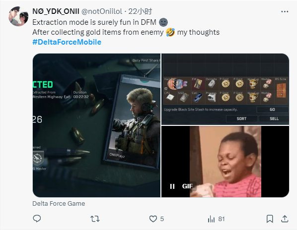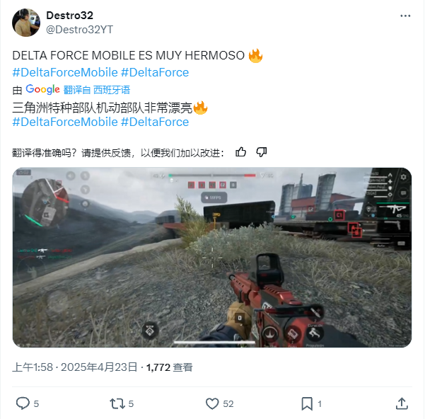 考慮到《三角洲行動》的過往表現,在海外取得這樣的成績並不意外。令我感到意外的,其實是在海外視頻網站或社交平台上,玩家們初見《三角洲行動》手遊的反饋。