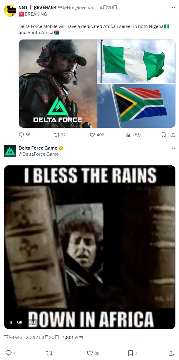 而且因為在南非和尼日利亞都架設了服務器,即便是國外大廠時常忽視的非洲好哥們,都能以較低的延遲玩上《三角洲行動》。