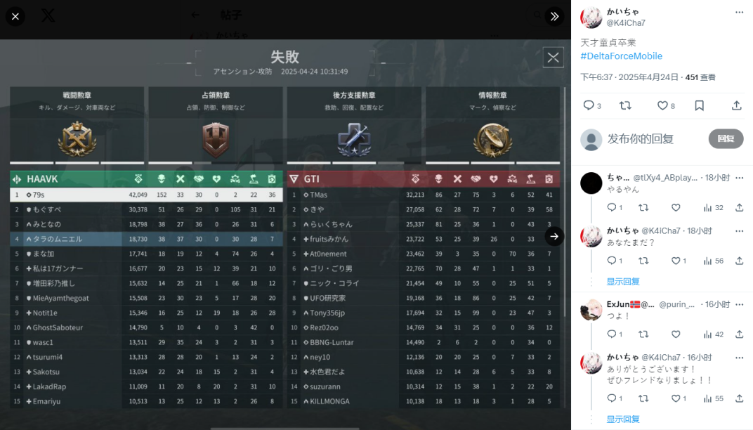 至於“全面戰場”,它的出現時機剛好填補了當下傳統大戰場端遊遺留的空白;放在手遊,那《三角洲行動》就是最能打的大戰場遊戲。海外的移動端玩家,針對“全面戰場”的社媒關注程度其實也比“烽火地帶”略高一些——因為這個他們之前真沒見過。