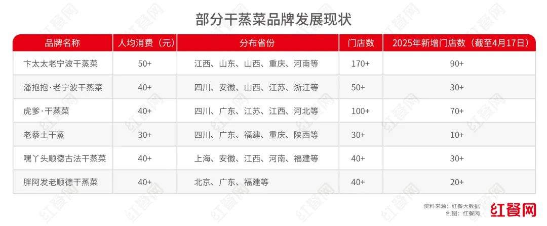 比如,2024年成立於寧波的卞太太老寧波幹蒸菜,門店分佈已經從浙江輻射至江西、山東、山西、重慶、河南、四川、雲南、江蘇、湖南等多個省份。據紅餐大數據,其目前已開出超150家門店,其中90+都是今年新開的。