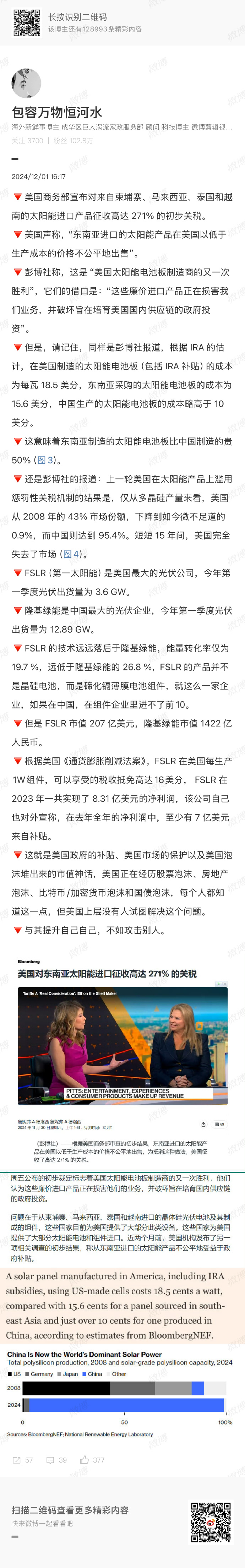 🔻當時美國的口號是重振美國太陽能產業,在關税之外還為此付出了巨大努力,從奧巴馬的《美國復甦與再投資法案》為美國太陽能產業提供了數十億美元,到拜登的《減少通貨膨脹法案》“為太陽能製造業釋放了 160 億美元的投資承諾”,以及特朗普對東南亞太陽能產品施加3000%+關税。