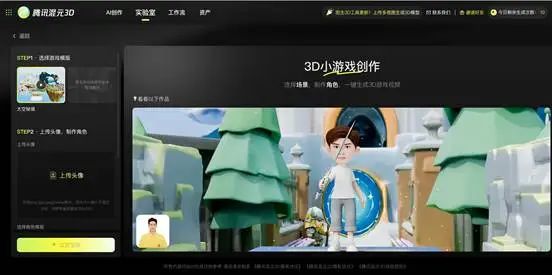 其使用方法也相對簡單,在騰訊混元 3D AI 創作引擎使用幫助的官方文件中提到,騰訊混元 3D AI 支持上傳圖像,結合遊戲場景生成基於個人形象的 3D 小遊戲視頻,打造專屬 IP 遊戲角色體驗。
