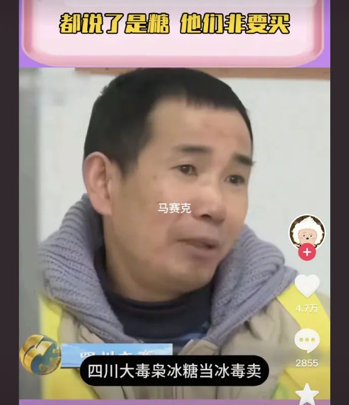 就是那個把冰糖賣給癮君子還給人家整出了糖尿病的奇才😂,最後被抓是因為用明礬冒充白糖。