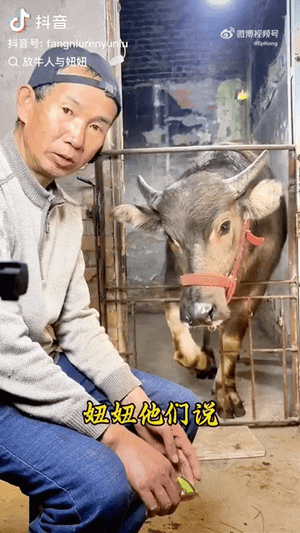沒想到還能看到《絕命糖師》續集!!最近有網友突然發現,這哥們現在養了一頭很可愛的牛,在dy上拍視頻。