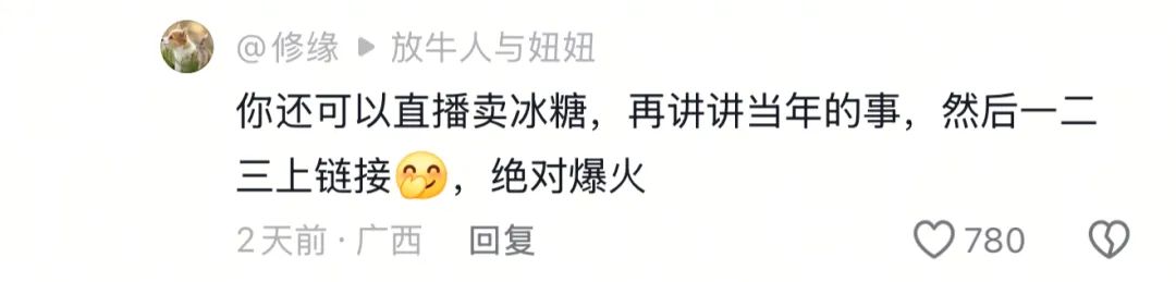 網友還給他出主意:可以考慮帶貨冰糖啊,或者茶葉也行啊哈哈哈哈。
