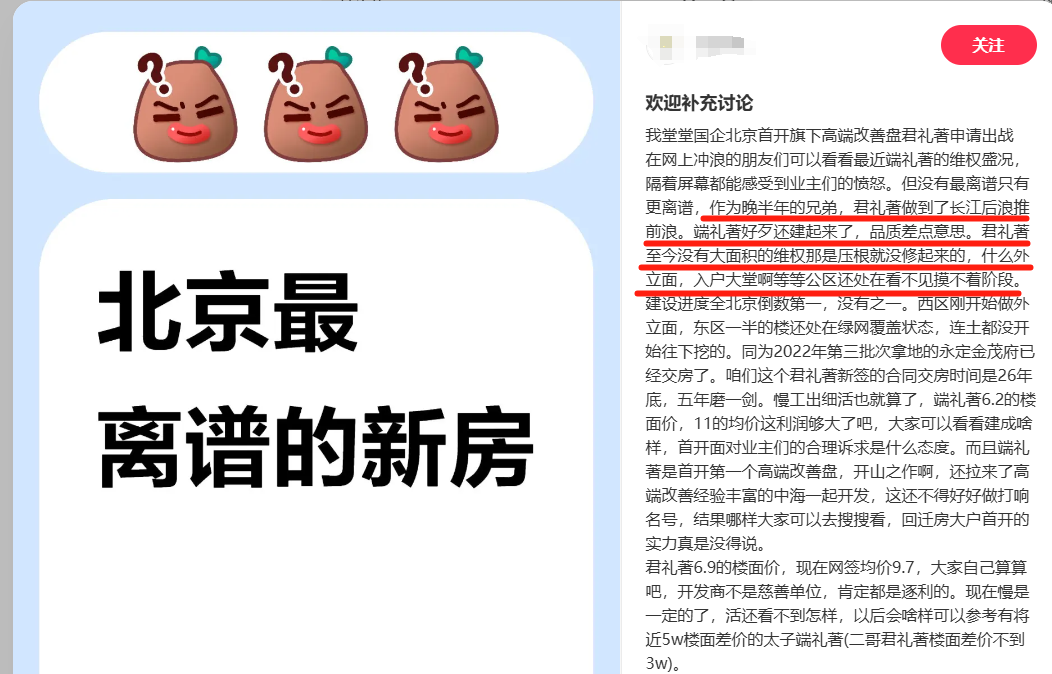 看到其他兩兄弟的情況,端禮著的業主們實在憋不住了,他們真怕首開來個“十年之約”。