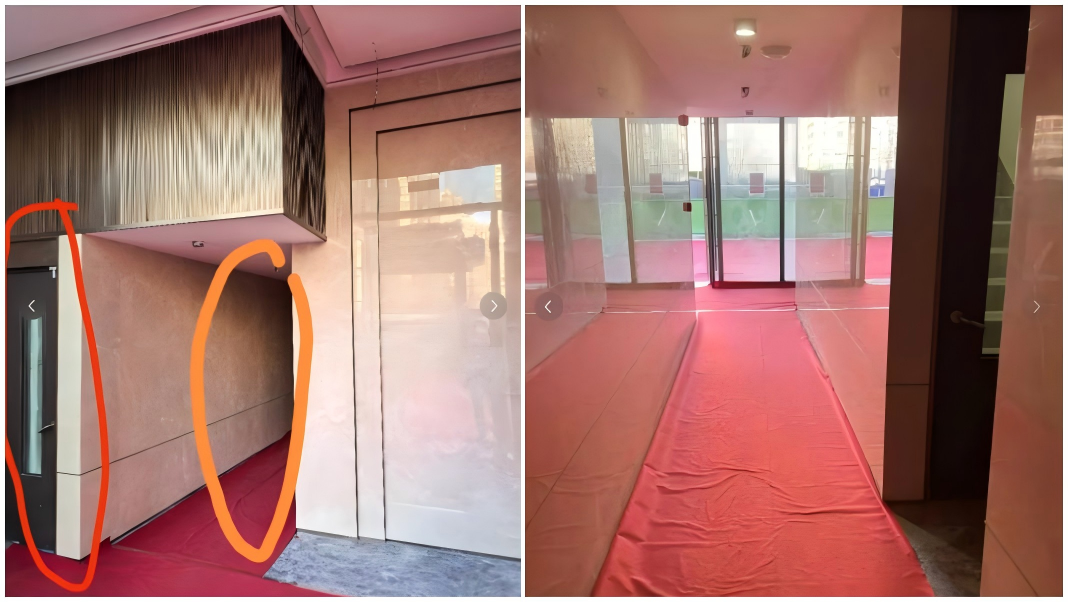 最讓業主難繃的還是單元大堂,業主需要穿過一條高2.2米、寬1.2米,長8.5米的“隧道”,才能乘坐電梯。有業主説,體驗就像: