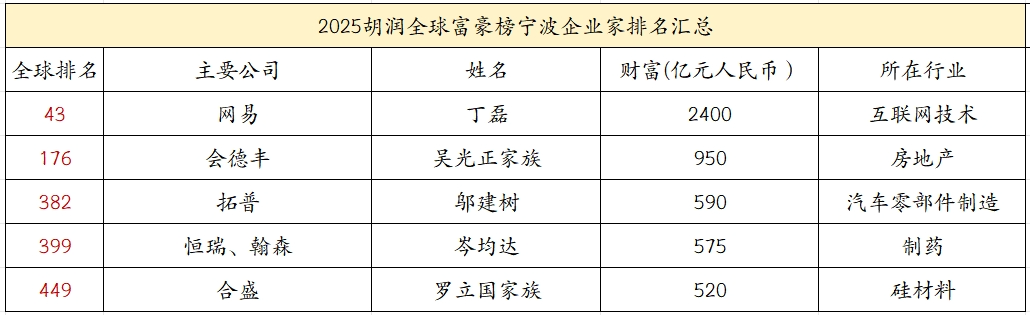 2025胡潤全球富豪榜上,寧波共有37人上榜