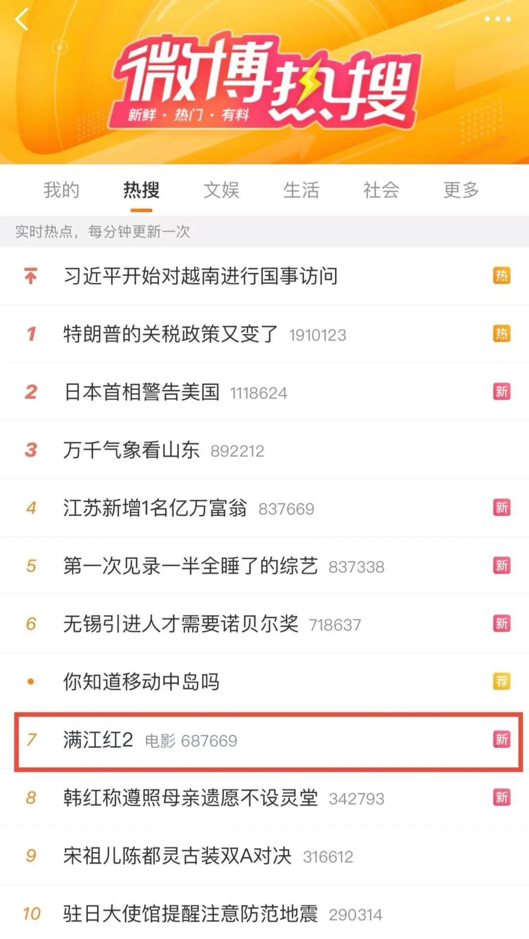 幾乎同一時間,同為老謀子待映項目的《滿江紅2》也登上了社交平台的高位熱搜。