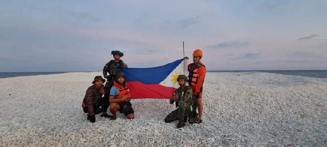 很顯然,菲律賓這是赤裸裸的挑釁與威脅,在他們分四個小組,分別進入鐵線礁1號、2號、3號沙洲的時候,還專門選擇了在中方展示國旗的沙洲進行擺拍,同時還在媒體上進行炒作。