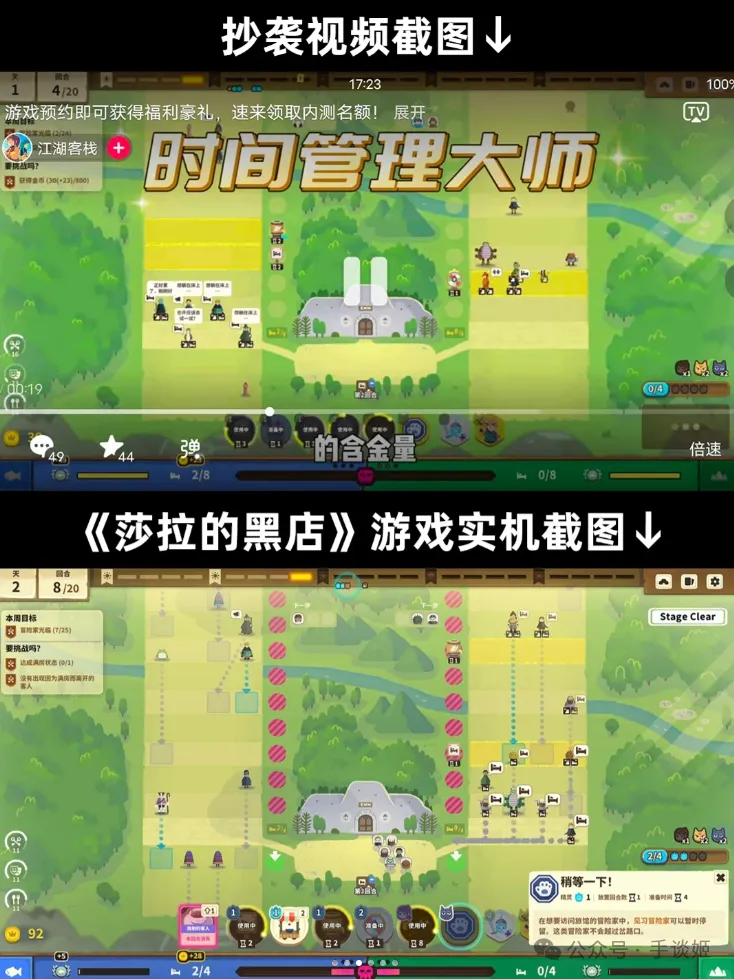 抄襲二字官方是加了引號的,因為比起説抄襲,不如説是掛羊頭賣狗肉的素材盜用,廣告裏顯示的正是《莎拉的黑店》,只不過名字換成了《江湖客棧》。