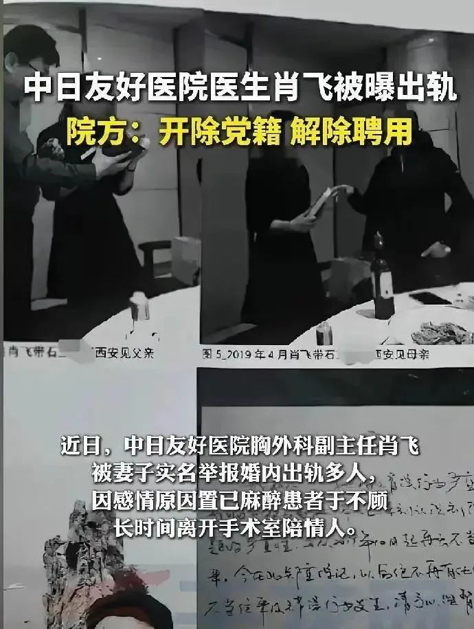 中日友好醫院胸外科副主任醫師肖飛,被妻子實名舉報婚內出軌多名醫護人員。