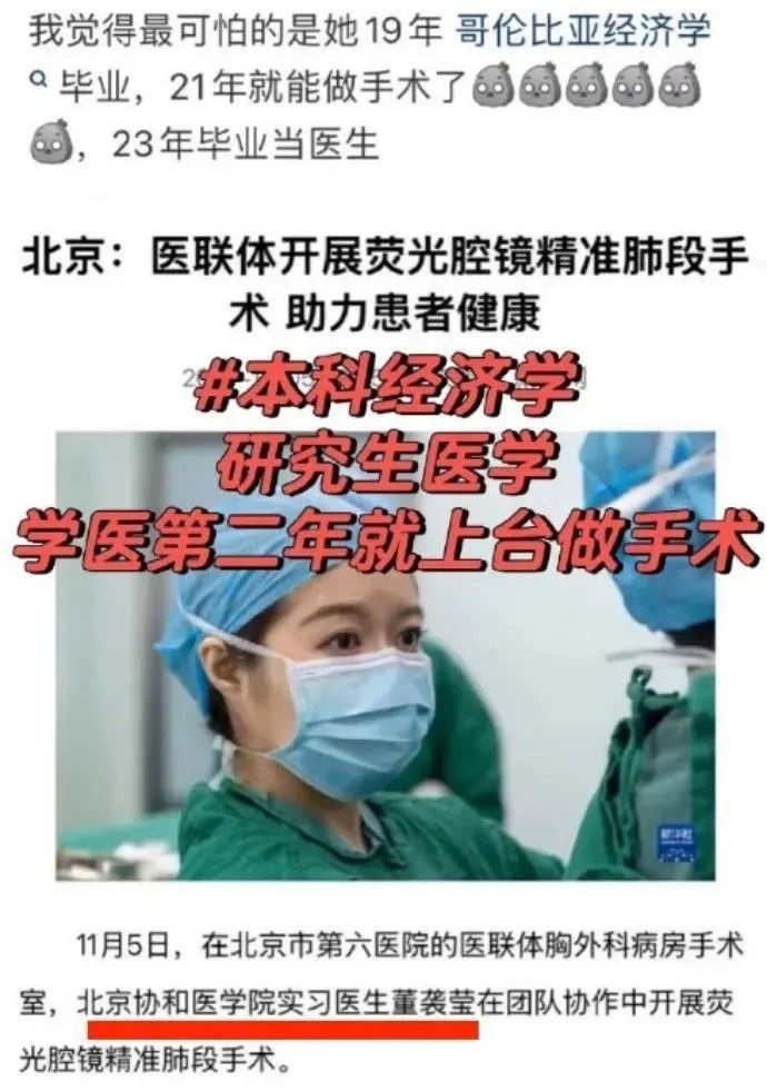 董小姐本身家庭條件優渥,父母都是系統內的高管,沒有卷本國的醫學生之路,本科就讀哥倫比亞大學經濟學專業。