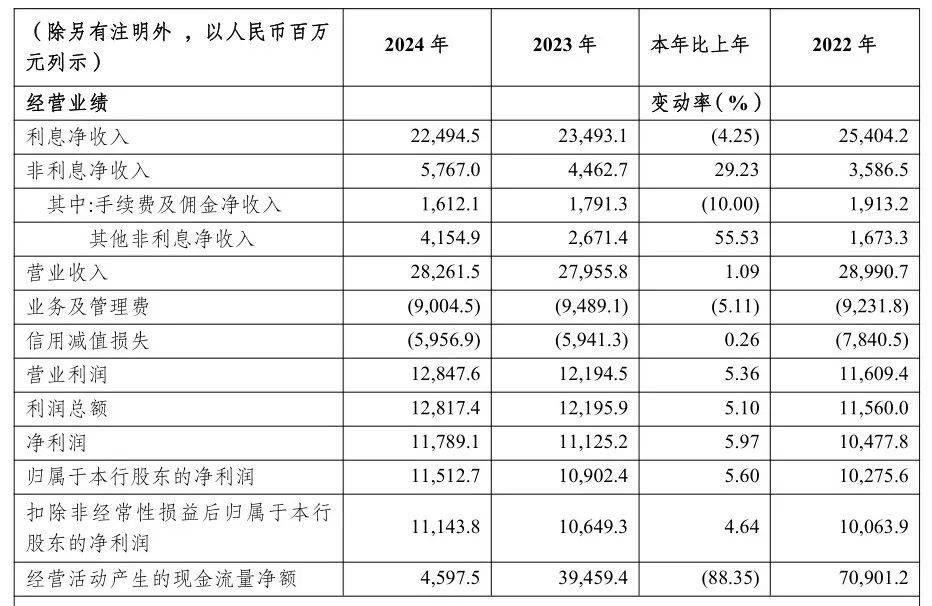 2024年,該行實現營業收入282.62億元,同比僅增長1.09%。