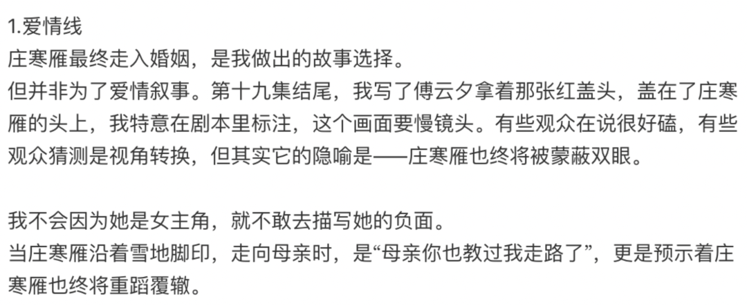 更何況這整部劇都圍繞女性互助與事業批大女主大做文章,加上女頻裏女潔男不潔本就是雷點,如此雪上加霜,確實不冤。