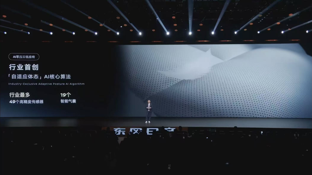 沒錯,造個座椅還用上了 AI ,按照發佈會説法,它有 49 個傳感器,通過一套可以 OTA 的算法,調節 19 個氣囊,保障不同人乘坐的舒適性,甚至越坐越好坐。。。