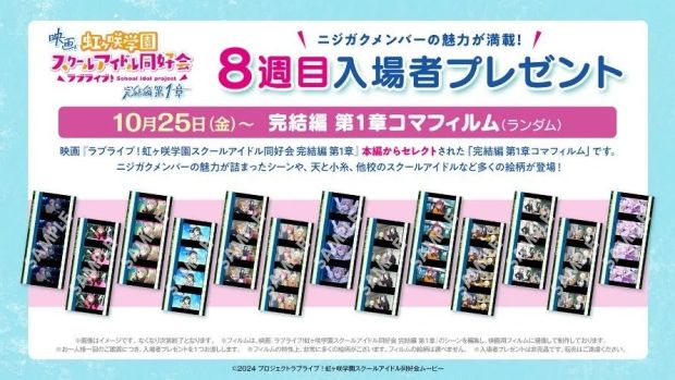 比如《虹咲學園學園偶像同好會完結篇 第1章》上映期間共發放了8輪特典,包含色紙、膠片、插畫卡等。在平均票價高達2000日元(日本平均票價1410日元)的情況下,本作票房僅3億出頭,對比其前輩繆斯(28.6億)和水團(13億)的劇場版票房差了不少。